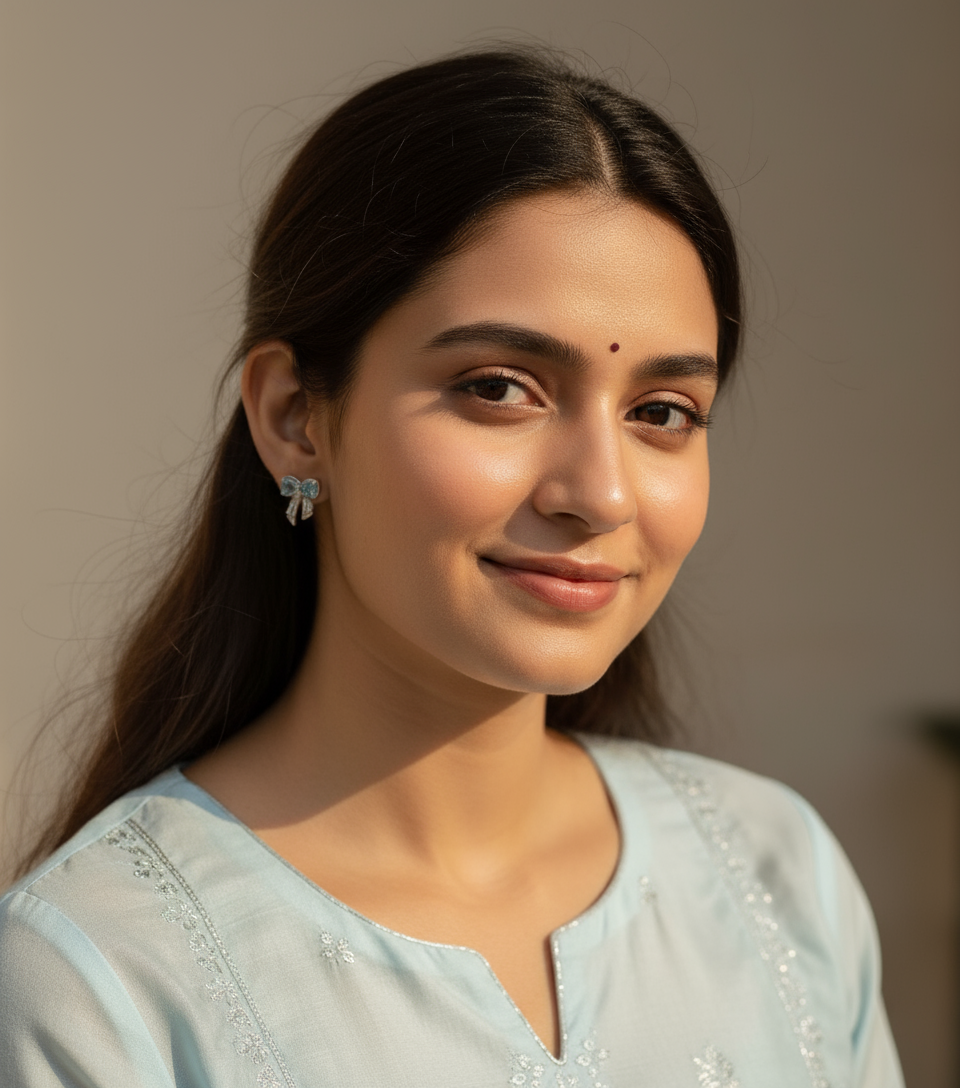 These studs feature hand-selected aquamarine stones sculpted into bow shapes, set in 925 sterling silver for a luminous glow. Accented with baguette-cut clear stones, every detail reflects skilled artistry and a delicate finish.