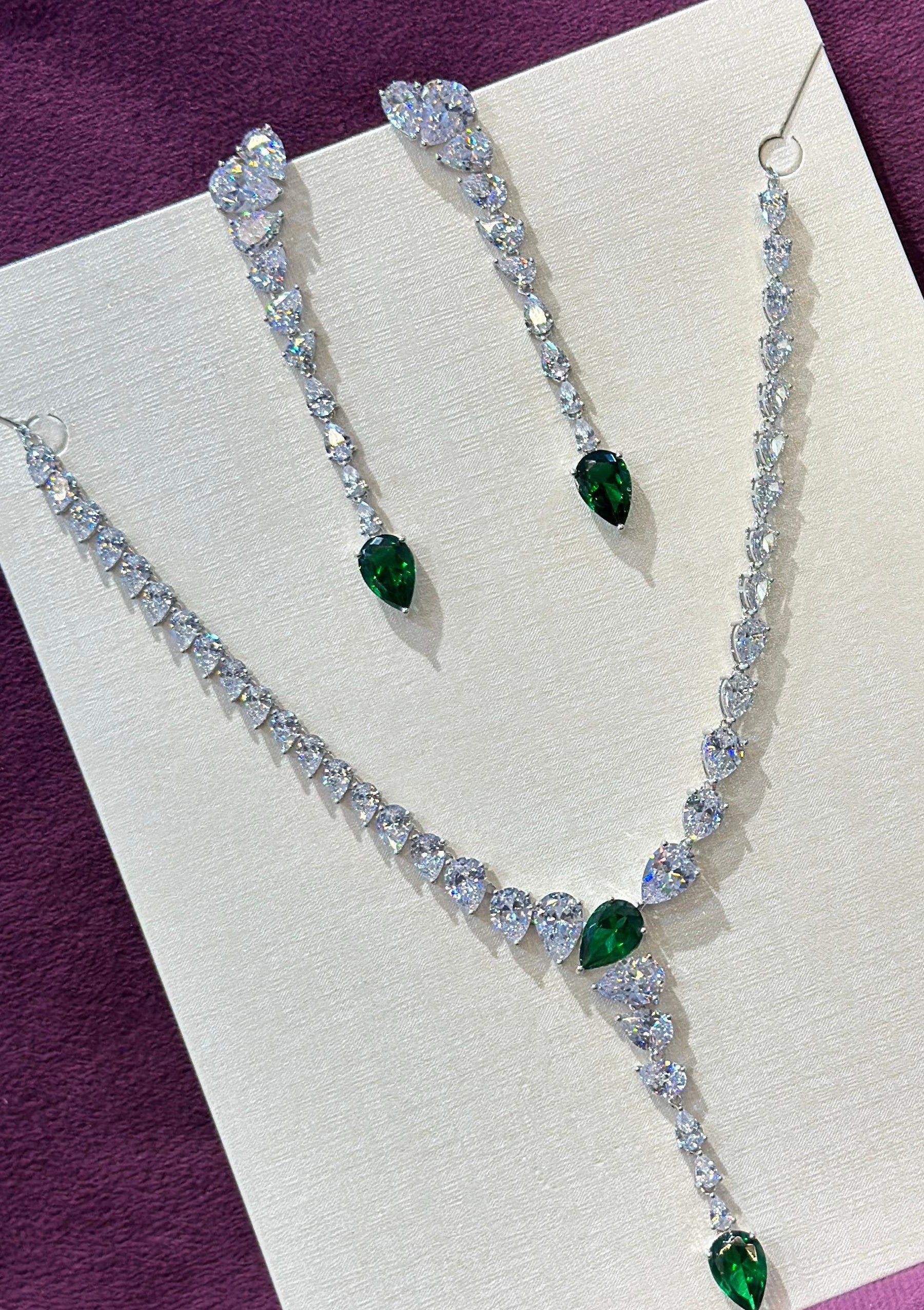 Emerald Dewdrop Cascade Necklace & Earrings Set
