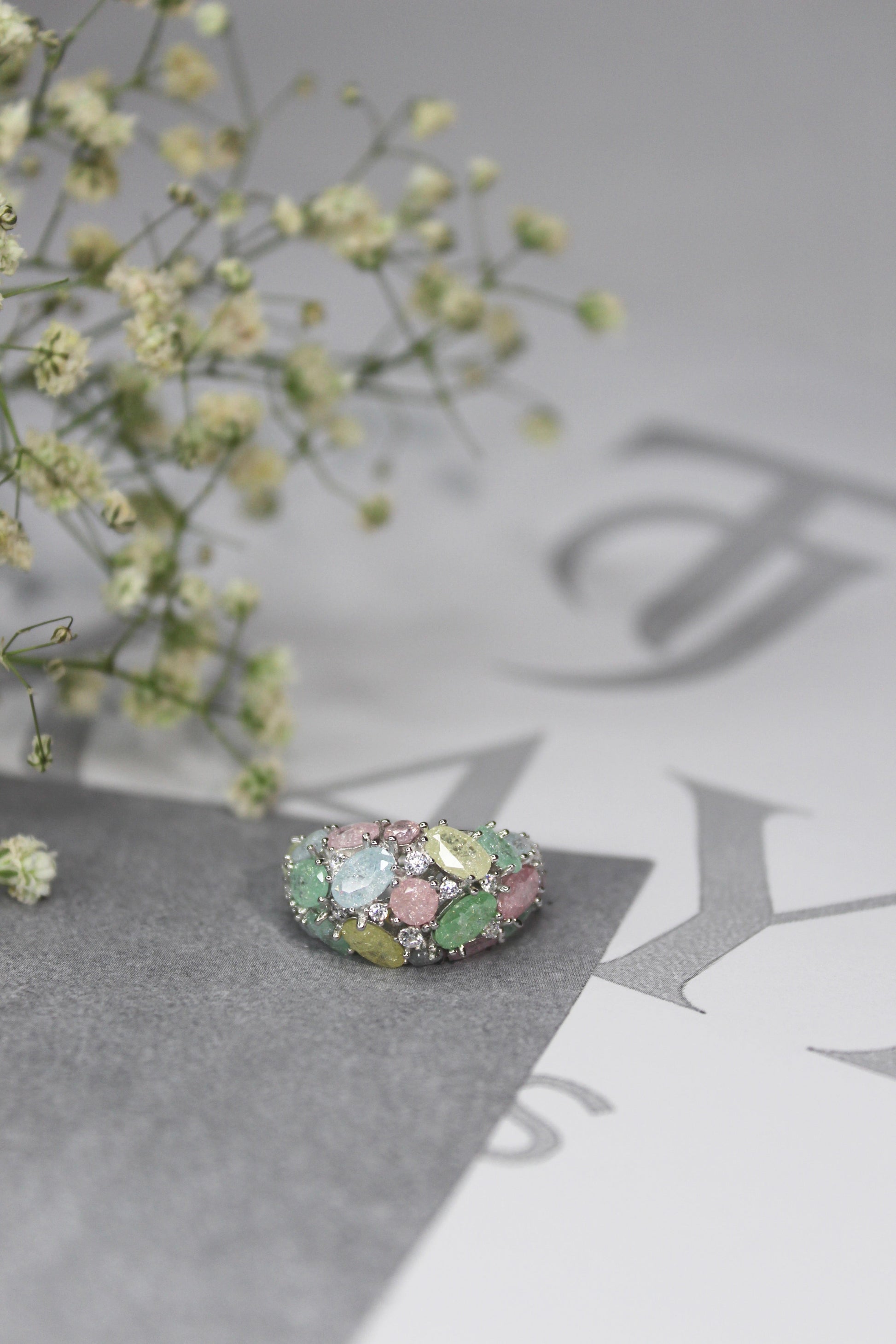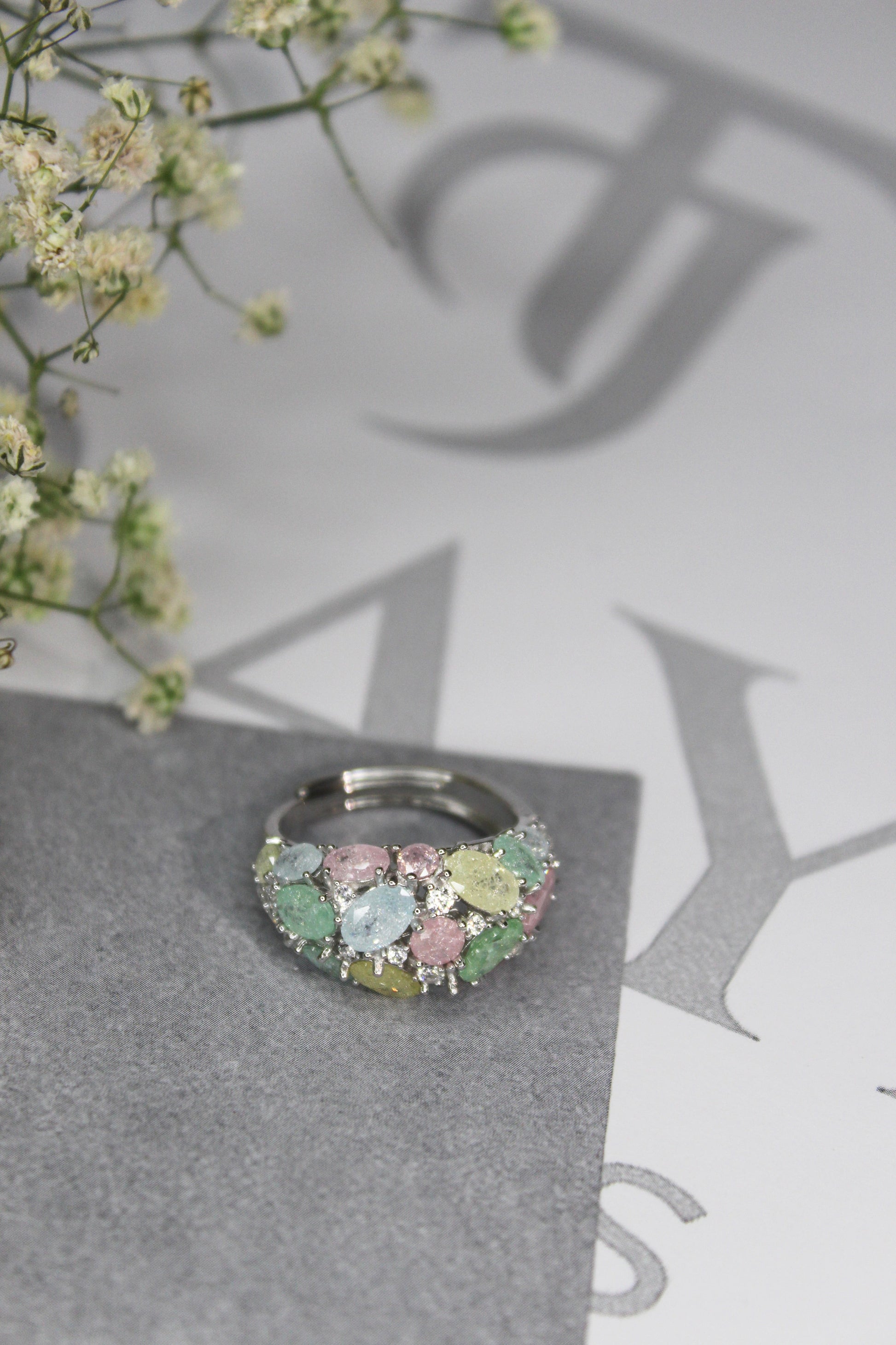 Pastel Gemstone Cluster Ring