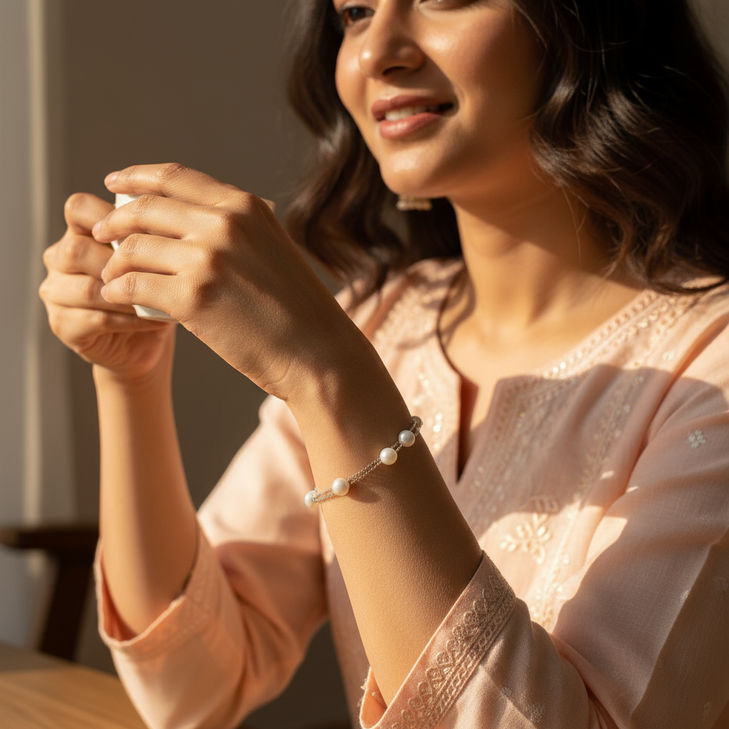 Expertly made in 925 sterling silver, the bracelet features two fine chains adorned with luminous freshwater pearls. Each pearl is hand-selected for its pristine glow, and the adjustable clasp ensures a perfect fit and easy elegance on any wrist.