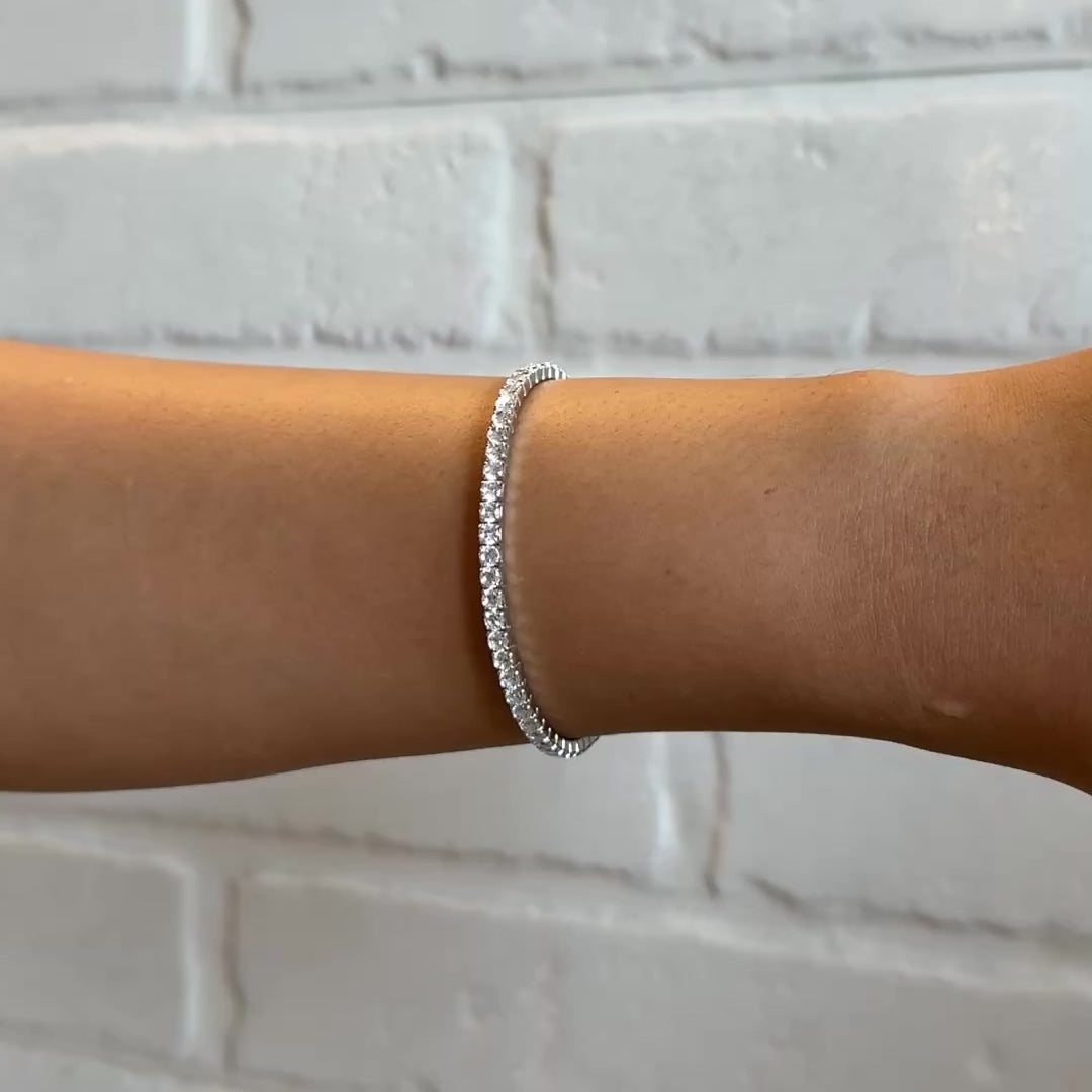 Crafted in premium 925 sterling silver, this bracelet features a gleaming row of high-quality round-cut zircons, securely set along a stretchable, elastic band. Each stone is selected for sparkle and clarity, while the innovative design ensures the bracelet fits comfortably and elegantly on any wrist, without the need for a clasp.